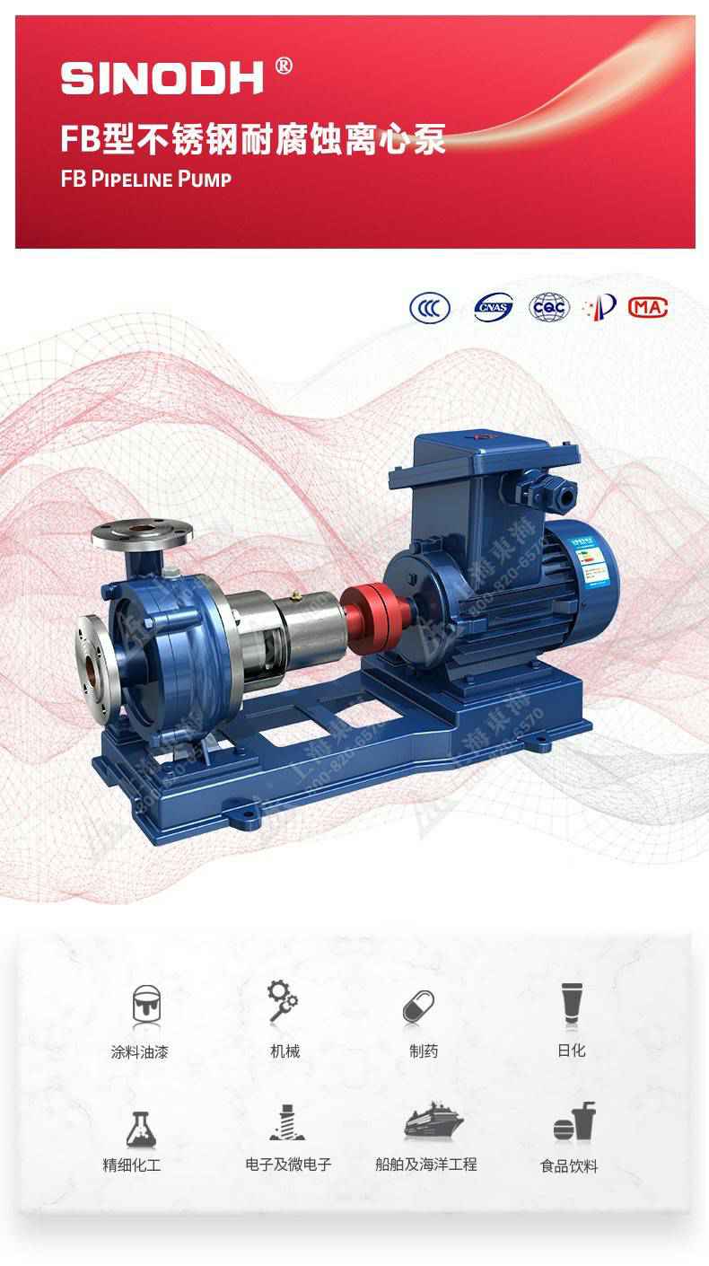 FB型不锈钢单级单吸悬臂式耐腐蚀离心泵,为长沙逍遥企业经营服务有限公司自主研发生产。本系列产品适用于输送不含固体颗粒,有腐蚀性液体。被输送介质温度为-20℃~200℃,泵的进口压力不能大于0.2MPa,广泛用于石油、化工、冶金、合成纤维、制药、食品、酿造等工业部门,也可供工矿、企业及城市供水、排水之用。